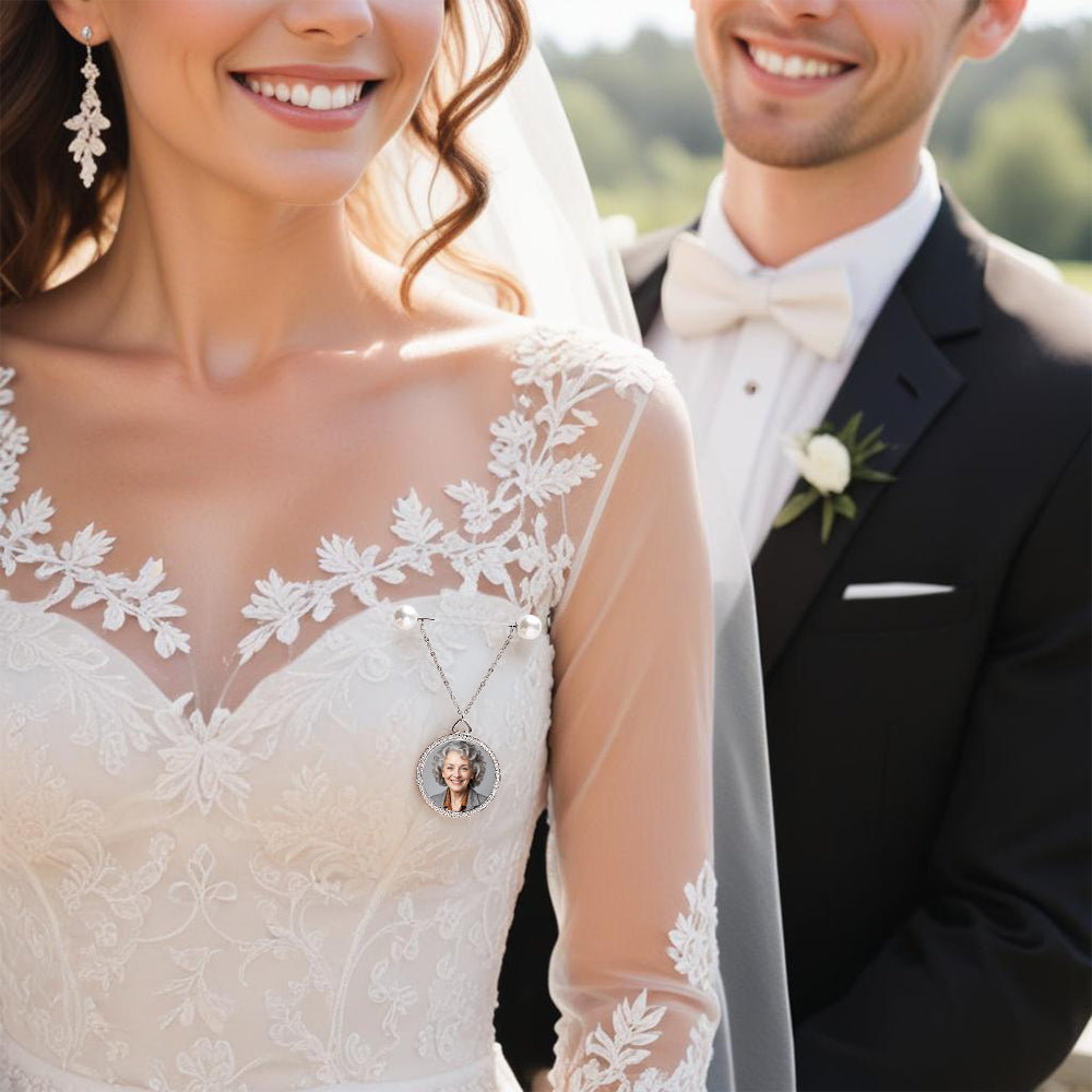 Add an elegant and sentimental touch to the bride’s special day with this personalized pearl bouquet charm brooch. Designed to be attached to the bridal bouquet as a pendant or worn as a classic brooch, it makes a meaningful gift for weddings, anniversaries, or any occasion that celebrates love and lasting memories. A beautiful keepsake the bride will treasure forever.